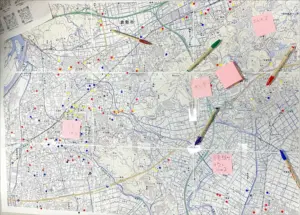 そのためにも、ワークショップでは、倉敷地域について交通情報や地形の情報、医療施設や避難所などを確認し、色分けしてプロットしていきました。そして、どこにどんなリスクが潜んでいるのか、ハザードマップを活用し、白地図に書きこんでいきました。できあがったマップをもとに、医療が提供できそうか、できそうにないエリアはどこなのかなど、ディスカッションを行いました。どのグループにおいても、地図を検索しなくても地形や施設の場所がスラスラわかり、さすが地域で働く薬剤師だなと感心しました。また、ディスカッションも活発で、普段から顔の見える関係が築けている印象を受けました。 今回の研修が自身の薬局の被災リスクを知るきっかけになり、事業継続計画(BCP)の策定や災害対策に役立てていただけると幸いです。