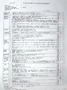 「学校環境衛生基準」とは別に「学校給食衛生管理基準」が独立告示されたことにより学校給食は学校薬剤師業務から外れました。しかし「学校給食衛生管理基準」の定期検査の第1票~第4票の「学校給食施設や設備」「食品の取り扱いや調理」においては学校薬剤師の協力が不可欠として、「学校薬剤師等の協力を得て次の各号に掲げる事項について検査を行い、その実施記録を保存する」ことと規定されています。つまり、学校薬剤師は、学校給食の衛生管理に携わる専門家として、検査や指導、助言などの役割を担っているということです。