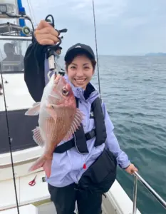 今回は昨年10月に開催されたタイラバ釣行について報告させていただきます。釣りをするのには一番気持ちのいい季節。釣れる魚も多く初心者でも楽しめるタイラバです。そんなわけで、今回は紅一点、遊漁船初挑戦の吉田先生が参加しました。今回チャーターした船が6人乗りであったので大勢で行くことはできませんでしたがいざ出発。天気にも恵まれてとても暖かかったです。釣り場までは30~40分ありその間仕掛けを作る人、アルコール補給をする人それぞれ自分の時間を楽しんでおられました。